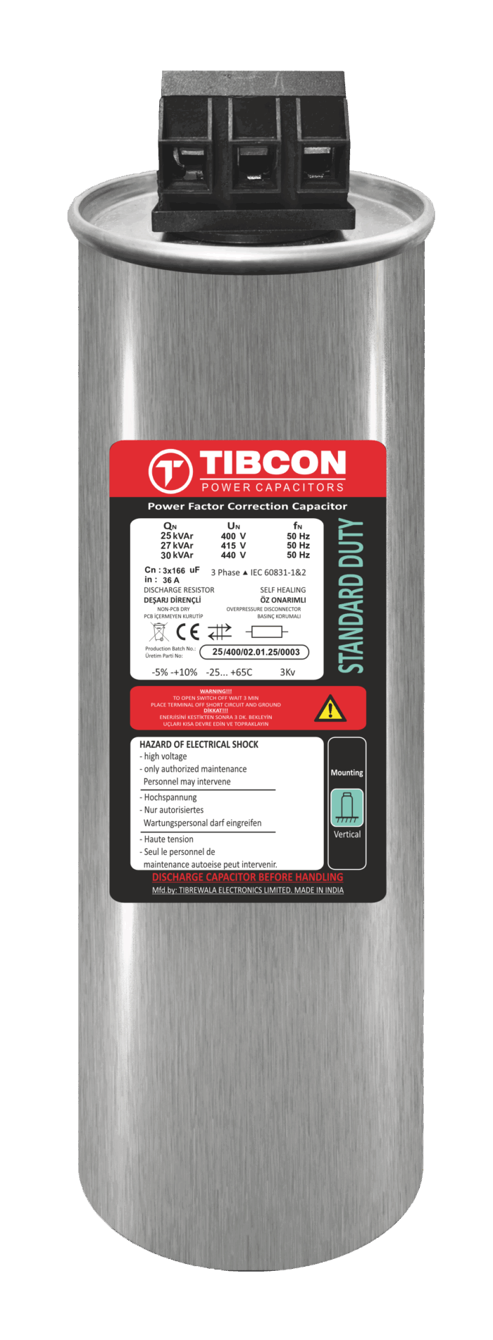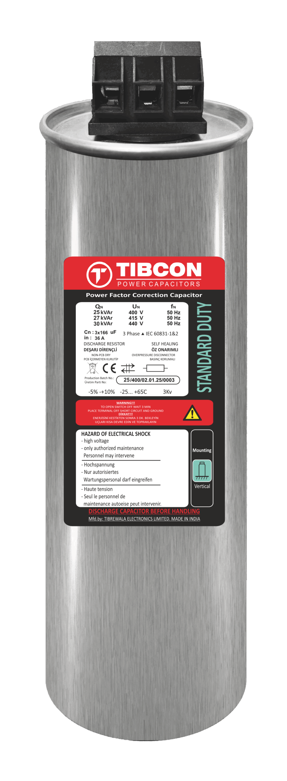 Home Ürünler LV CAPACITORS 400V/415V/440V LOW VOLTAGE CYLINDRICAL CAPACITORS 25 KVAR 400-415-440 V CYLINDER
