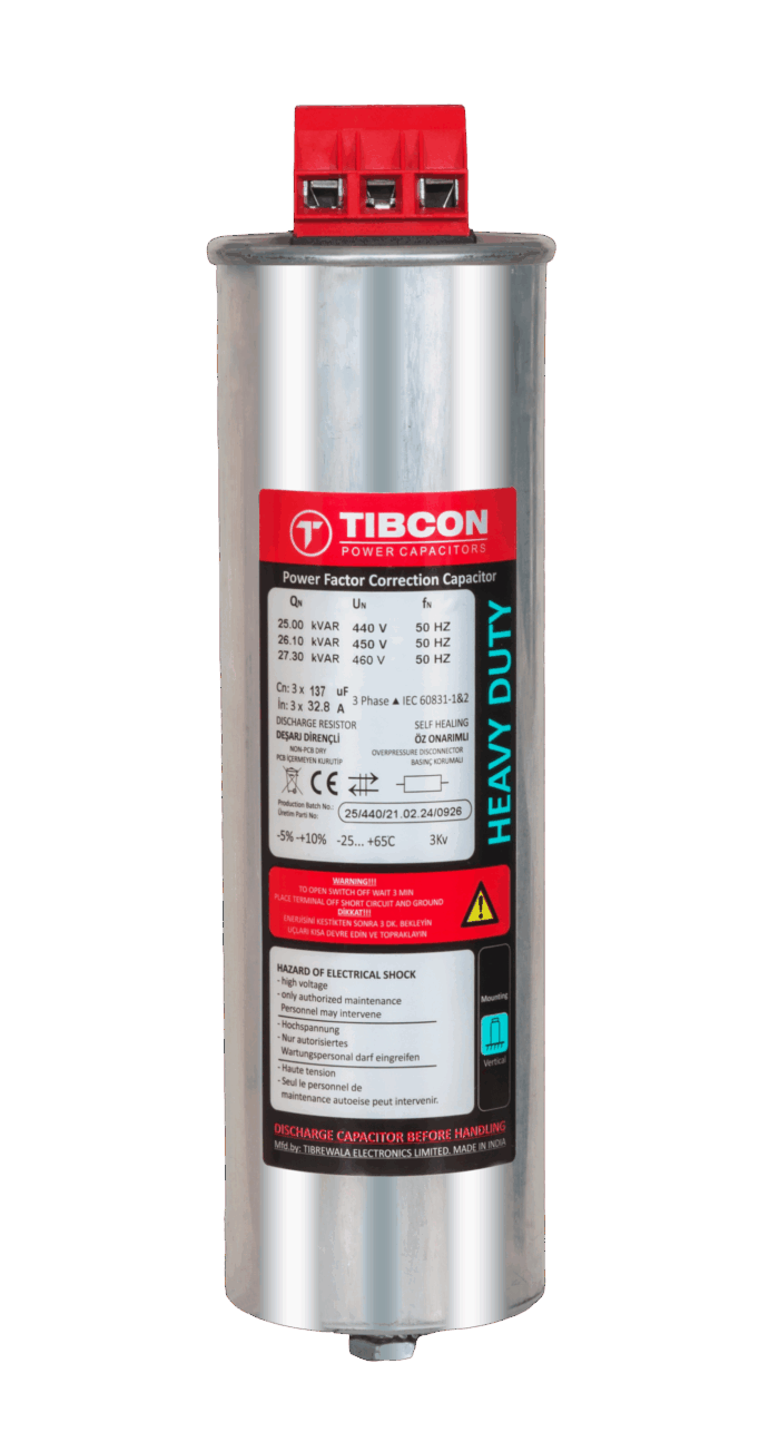 • 440V / 450V / 460V HEAVY DUTY LOW VOLTAGE CYLINDRICAL CAPACITORS